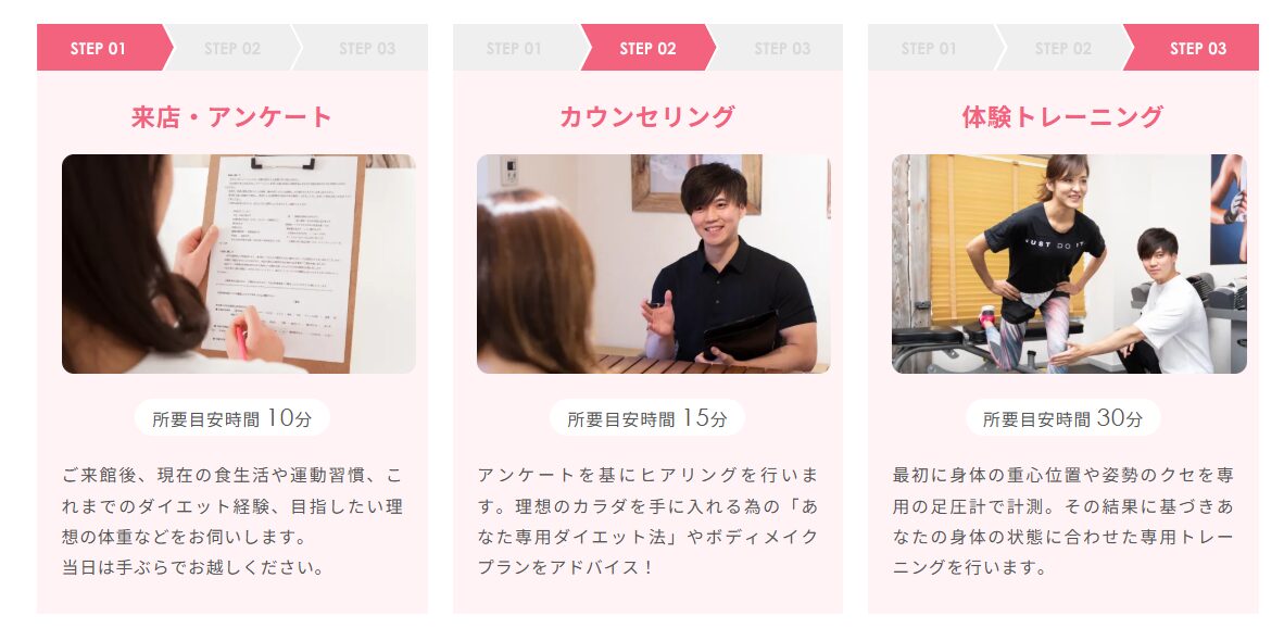ビーコンセプトでは、体の悩み・過去のダイエット失敗・予算・ライフスタイルを丁寧にヒアリングしたうえで、あなた専用のプランを提案してくれます。