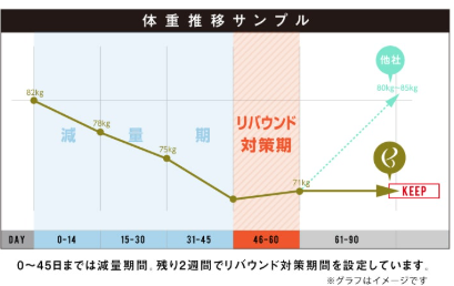 A5:ビーコンセプトでは、「リバウンド率4%」と発表しています。 これは、2ヶ月の集中コース+6ヶ月のアフターフォロー付きプログラムを受講した場合の統計です。このプログラムは「卒業後も毎月1回のトレーニング+食事指導+自宅動画」で、卒業後の生活習慣をフォローする仕組みです。 ただし、卒業後の食事・運動習慣を維持できなければ、一般的なダイエット同様にリバウンドリスクは残ります。