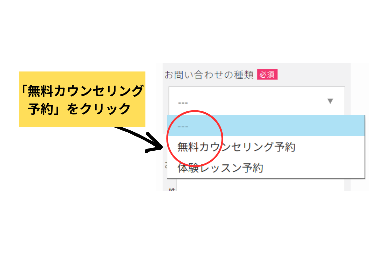 4お問い合わせの種類で「無料カウンセリング予約」を選択