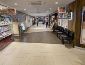 - 飲食店のある通路もそのまま通り抜けます
