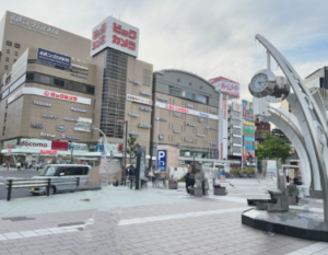 - 正面にビックカメラさんがあるので信号を渡り右折します