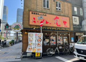 - 階段を出て振り返りますと亀王ラーメンがございます。その角を右に入ります