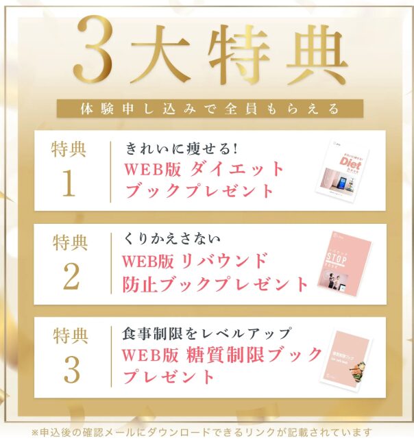 | 設備・サービス | トレーナーによるサポート、定期カウンセリング、更衣室・ロッカーなど |