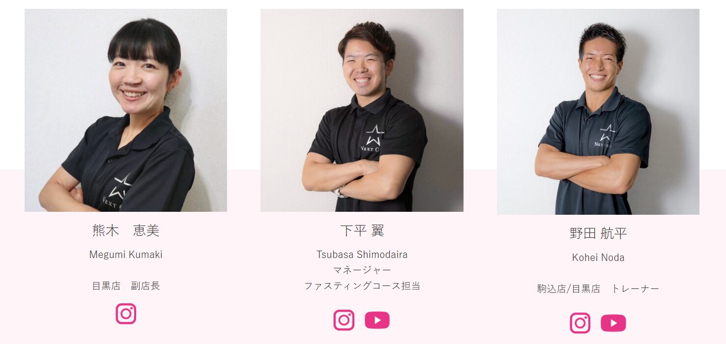 NEXT GYM TOKYOは公式Instagram(@next__gym)で各トレーナーの日常投稿を頻繁に発信しています。 「毎日更新!トレーナーの雰囲気が分かる」とも案内されているので、カウンセリング前に投稿を見て「なんか話しかけやすそう」と感じたトレーナーに指名を入れるのがおすすめです。指名料は550〜1,100円/回。