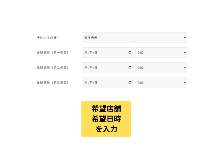 2体験予約フォームに沿って必要事項を入力