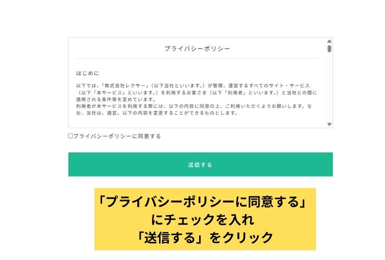 4「プライバシーポリシーに同意する」にチェックを入れ「送信する」をクリック