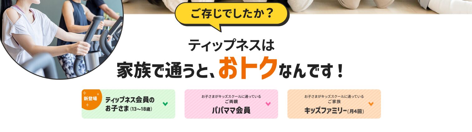 実はティップネスでは家族で通うとかなりお得になるプランが多数存在します。